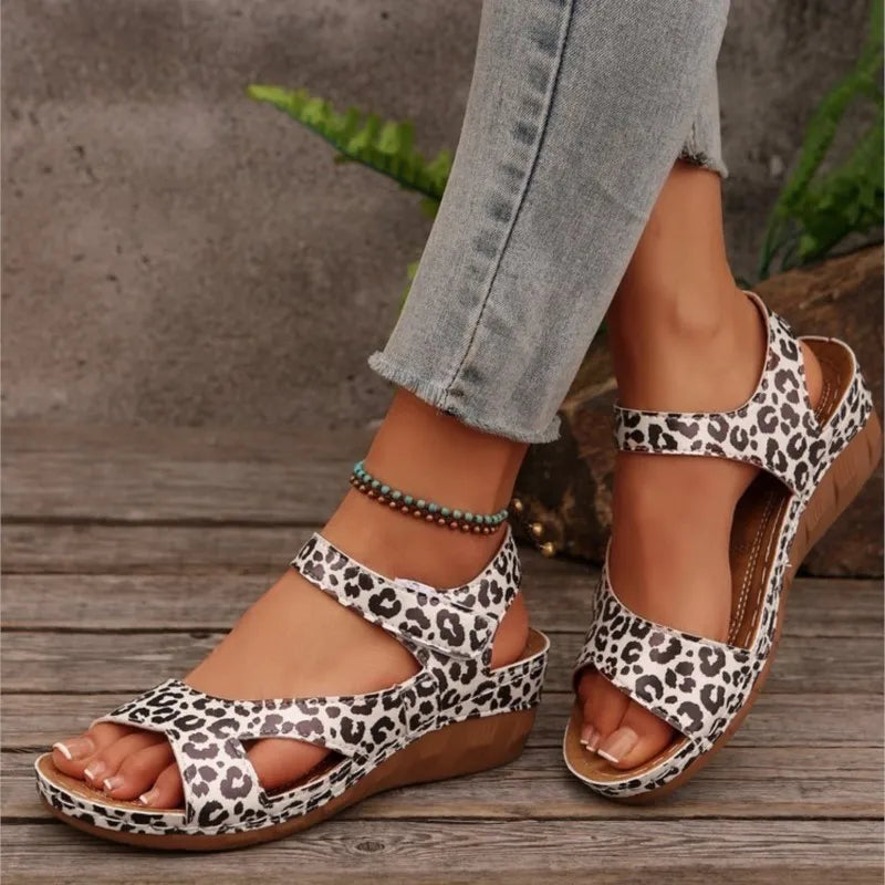 Bronisława - Ręcznie robione sandały na koturnie z najwyższej jakości materiału